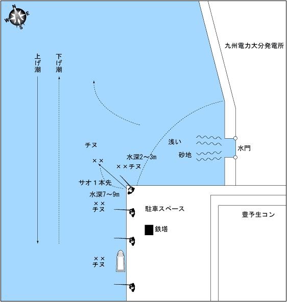 小中島川の河口に位置する埠頭で、春先の乗っ込み時期には30〜50cmクラスのチヌが釣れる場所である。