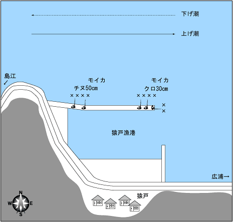 比較的浅い釣場なので、少し遠投気味に狙う方が良いだろう。また、エサ盗りが多いので、クロにはパン粉、チヌにはダンゴエサが有効。